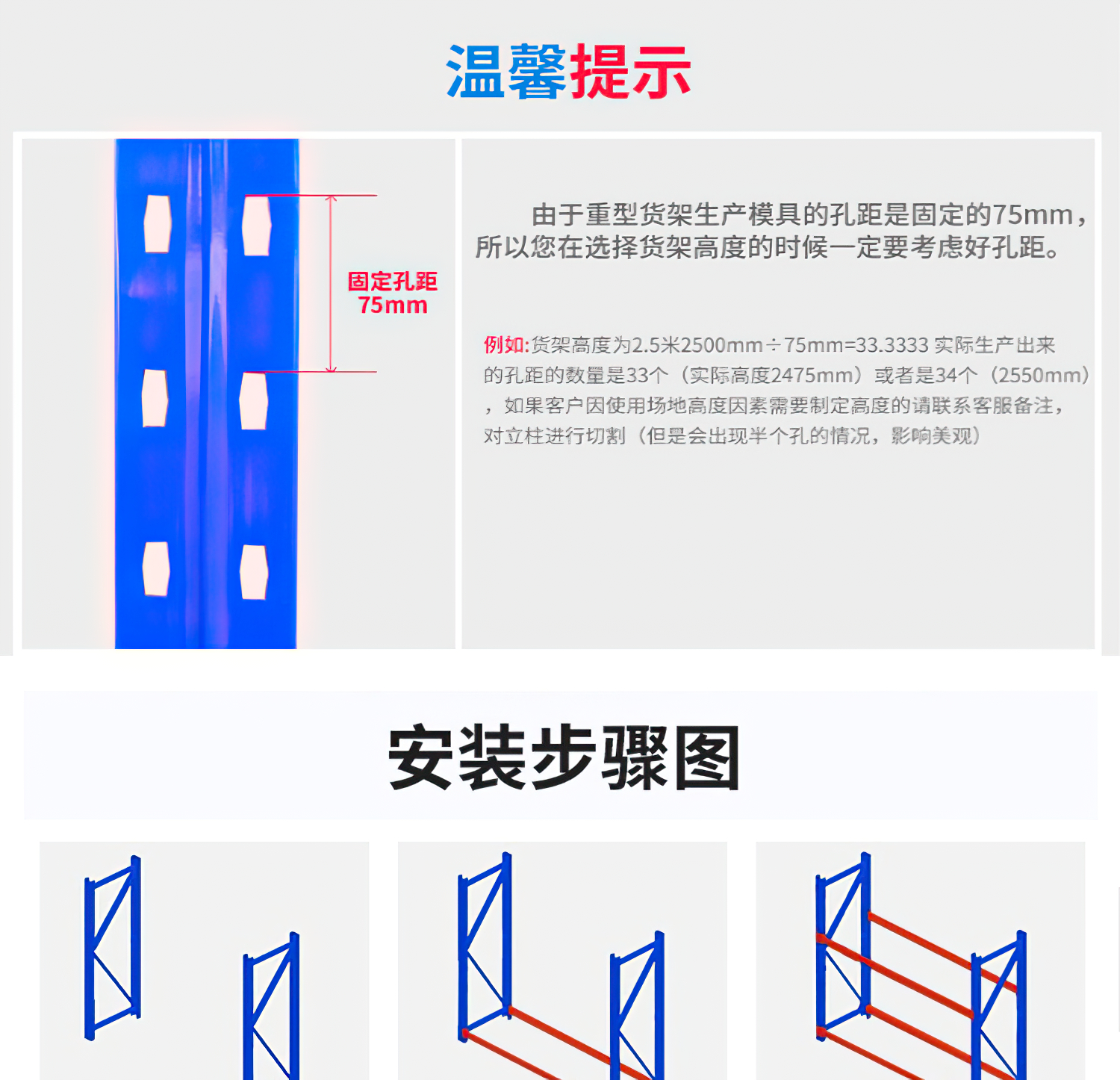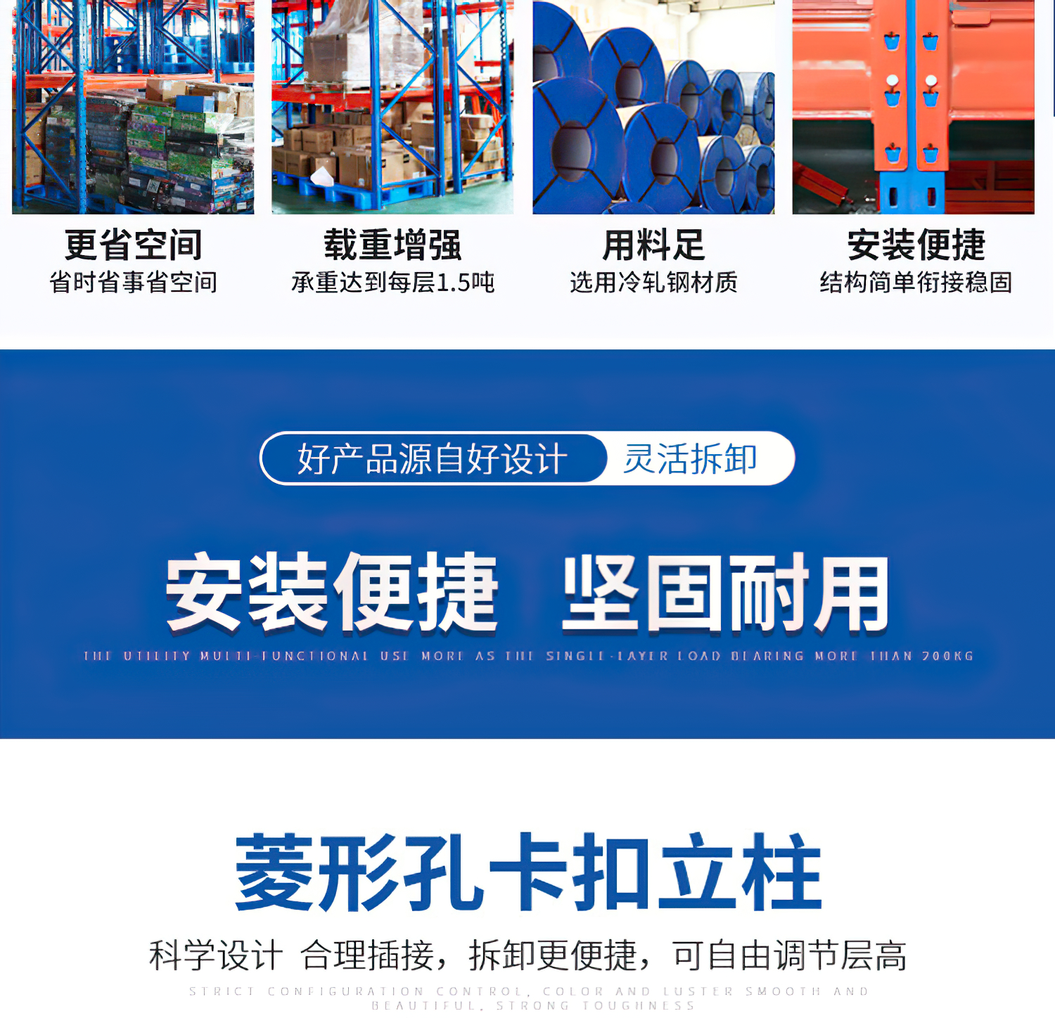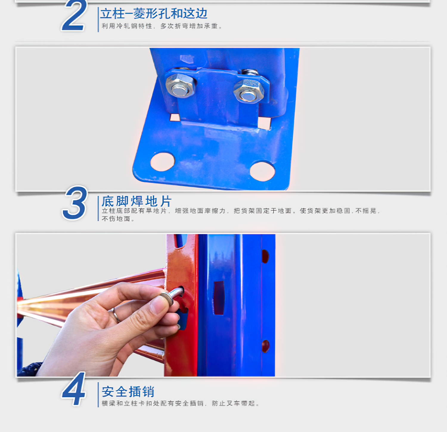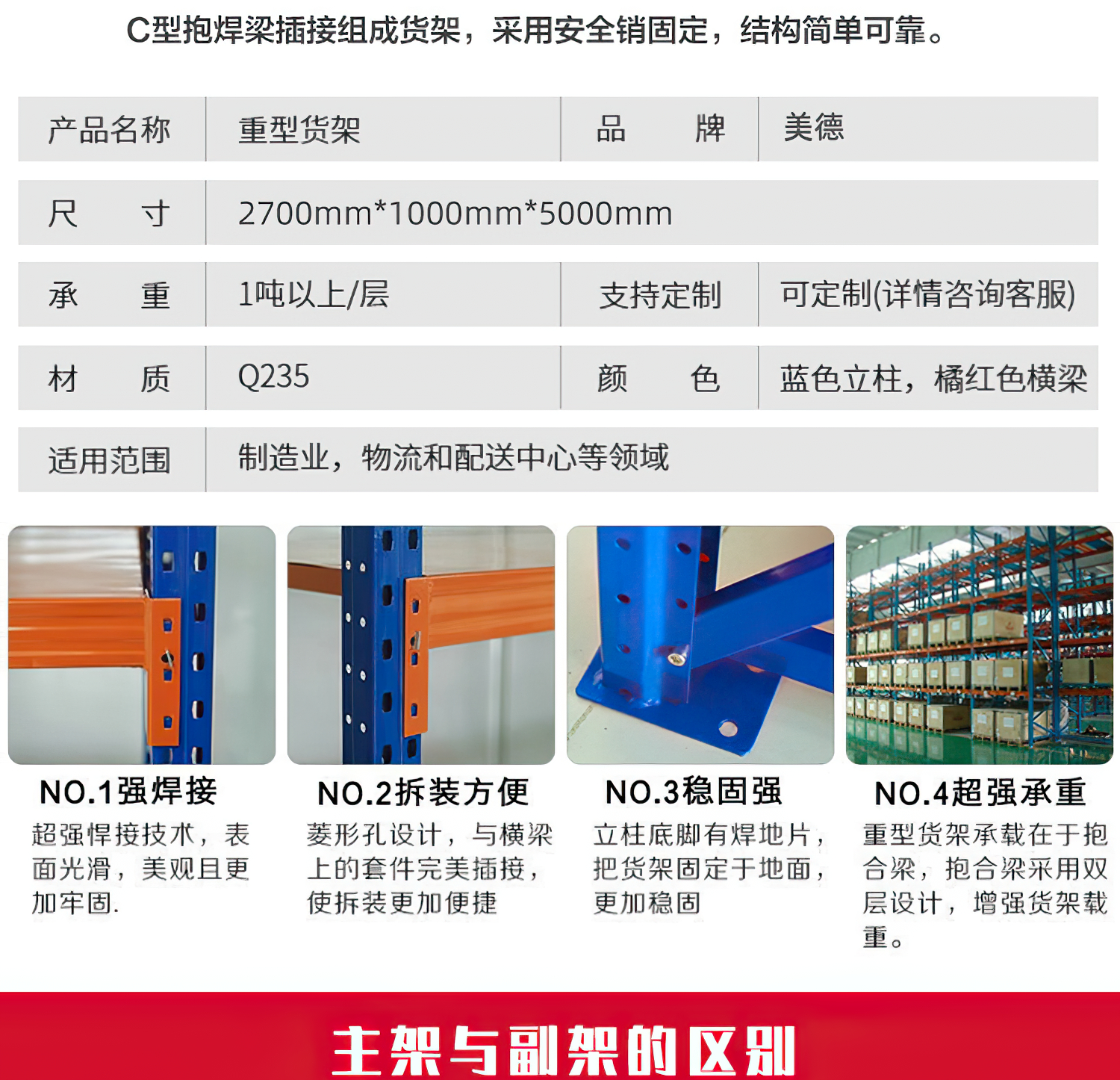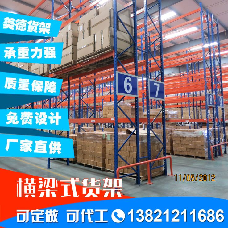 橫梁式貨架是以存取托盤貨物為目的的專業倉庫貨架(每個托盤為一個貨位,因此又被稱為貨位式貨架);橫梁式貨架由柱片(立柱)、橫梁組成,橫梁式貨架結構簡潔、安全可靠。根據用戶實際使用情況:托盤載重要求、托盤尺寸、倉庫實際空間、叉車實際提升高度,提供不同規格的橫梁式貨架以供選擇。橫梁式貨架結構簡單、安全可靠,可任意調整組合,出入庫不受物品先后順序的限制。廣泛應用于以托盤存儲、叉車存取的倉儲模式。