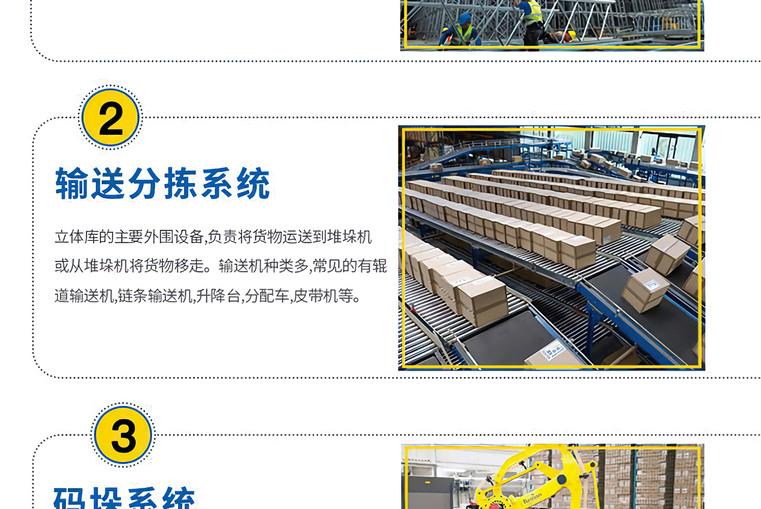 自動化立體倉庫是由立體貨架、有軌巷道堆垛機、出入庫托盤輸送機系統、尺寸檢測條碼閱讀系統、通訊系統、自動控制系統、計算機監控系統、計算機管理系統以及其他如電線電纜橋架配電柜、托盤、調節平臺、鋼結構平臺等輔助設備組成的復雜的自動化系統。運用一流的集成化物流理念,采用先進的控制、總線、通訊和信息技術,通過以上設備的協調動作,按照用戶的需要完成指定貨物的自動有序、快速準確、高效的入庫出庫作業。