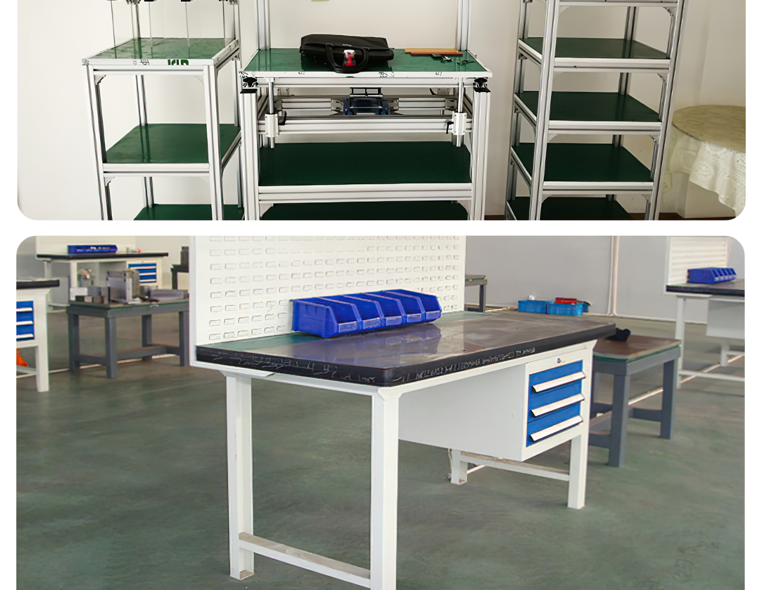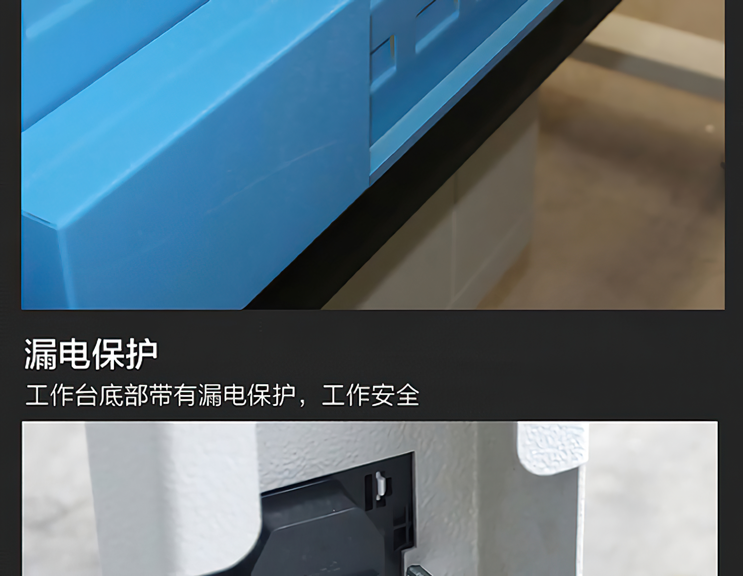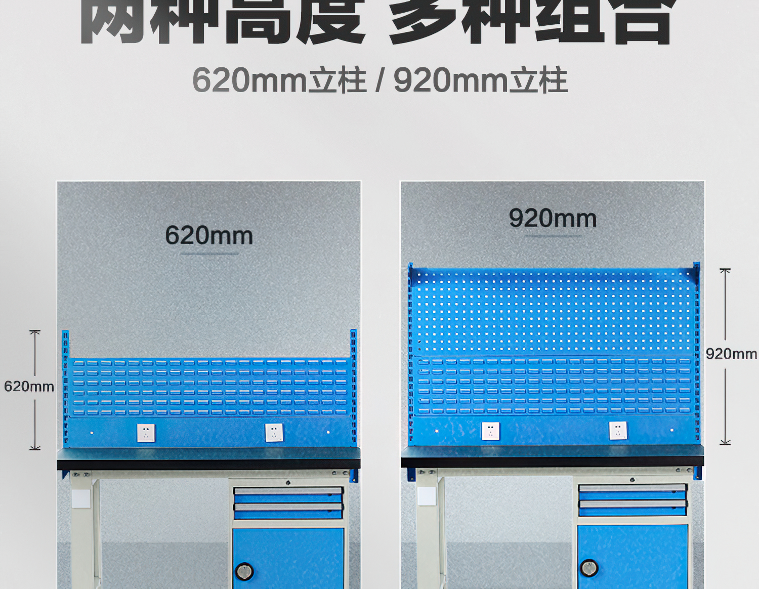 工作臺采用優質冷扎板精工制作而成,堅固的工作桌框架,牢固平穩,可使工作桌承重1000kg;多種工作桌面選擇,可配合不工使用的要求;工具吊柜(箱),側柜(箱),外形美觀;層板,抽屜質量上乘,承重大,抽屜內可根據需要任意分隔;節約空間,適用性強。