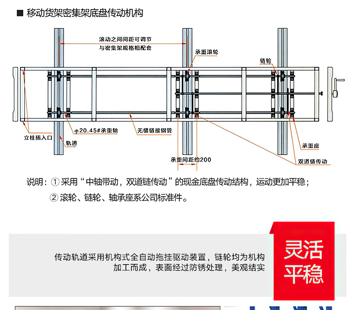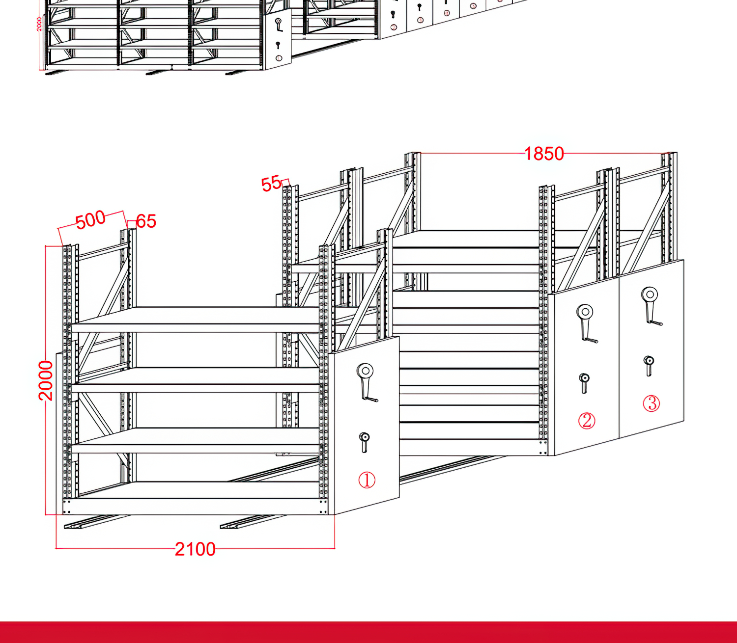 移動式貨架僅需設一條通道,空間利用率極高,安全可靠,移動方便,根據承重可分為重型、中型和輕型三種,一般重型貨架采用電動控制便于移動,輕型、中型一般采用手搖移動。 產品特點:適用于庫存品種多,但出入庫頻繁率較低的倉庫,或者庫存頻率較高,但可按巷道順序出入庫的倉庫。通常只需要一個作業通道,可大大提高倉庫面積的利用率,所以廣泛應用于傳媒、圖書館、金融、食品等行業倉庫。
